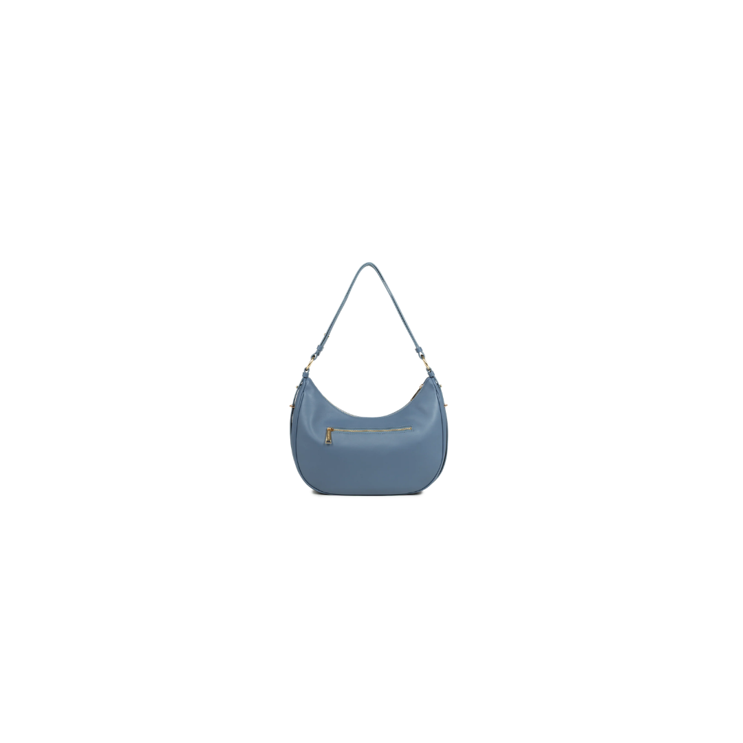 Questa grande borsa a tracolla è realizzata in pelle di vitello liscia. Presenta una tasca interna semplice, una tasca interna con zip e una tasca posteriore esterna con zip. Si può portare a spalla o a tracolla.