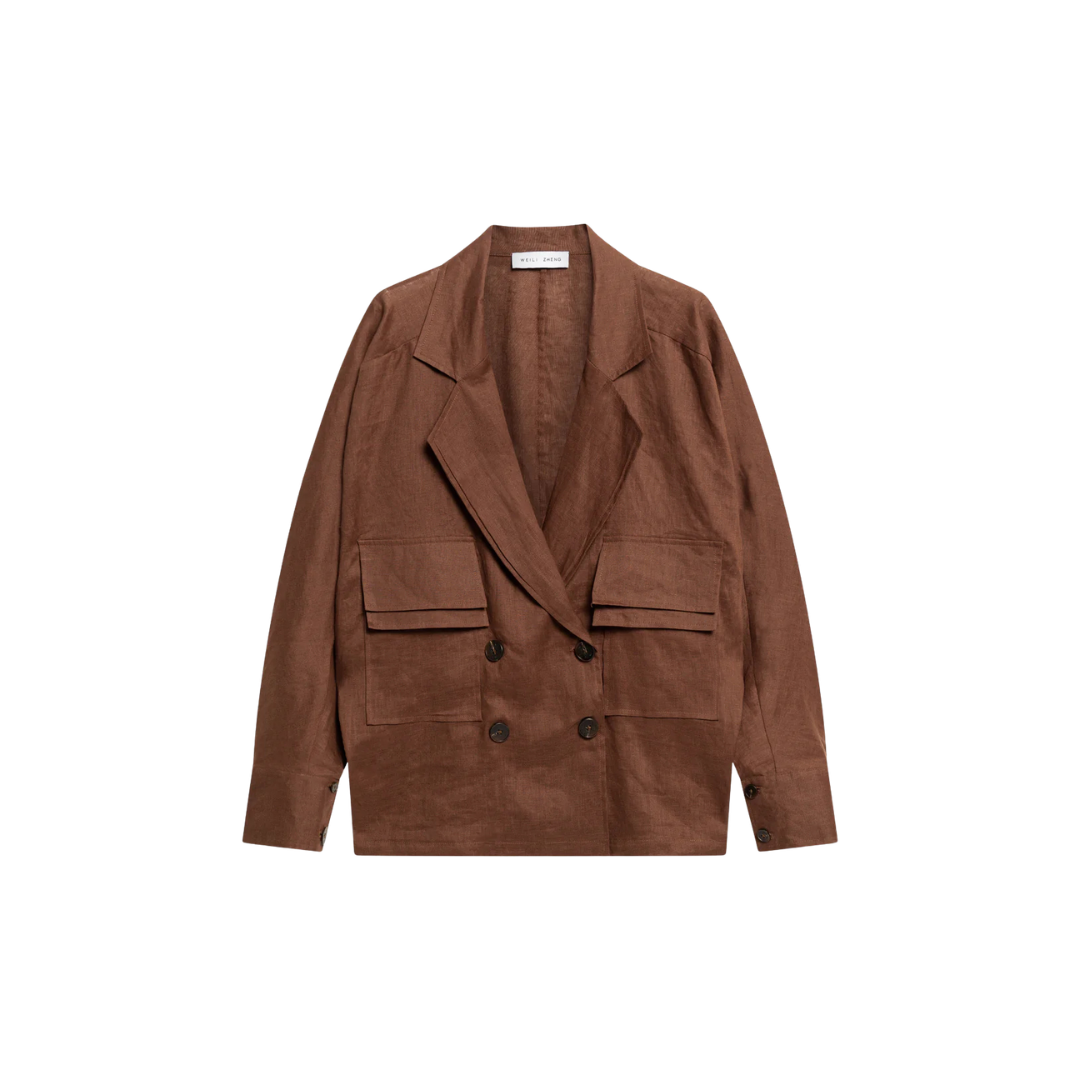 WEILI ZHENG S26JK11 GIACCA SARTORIALE IN LINO COCOA BROWN