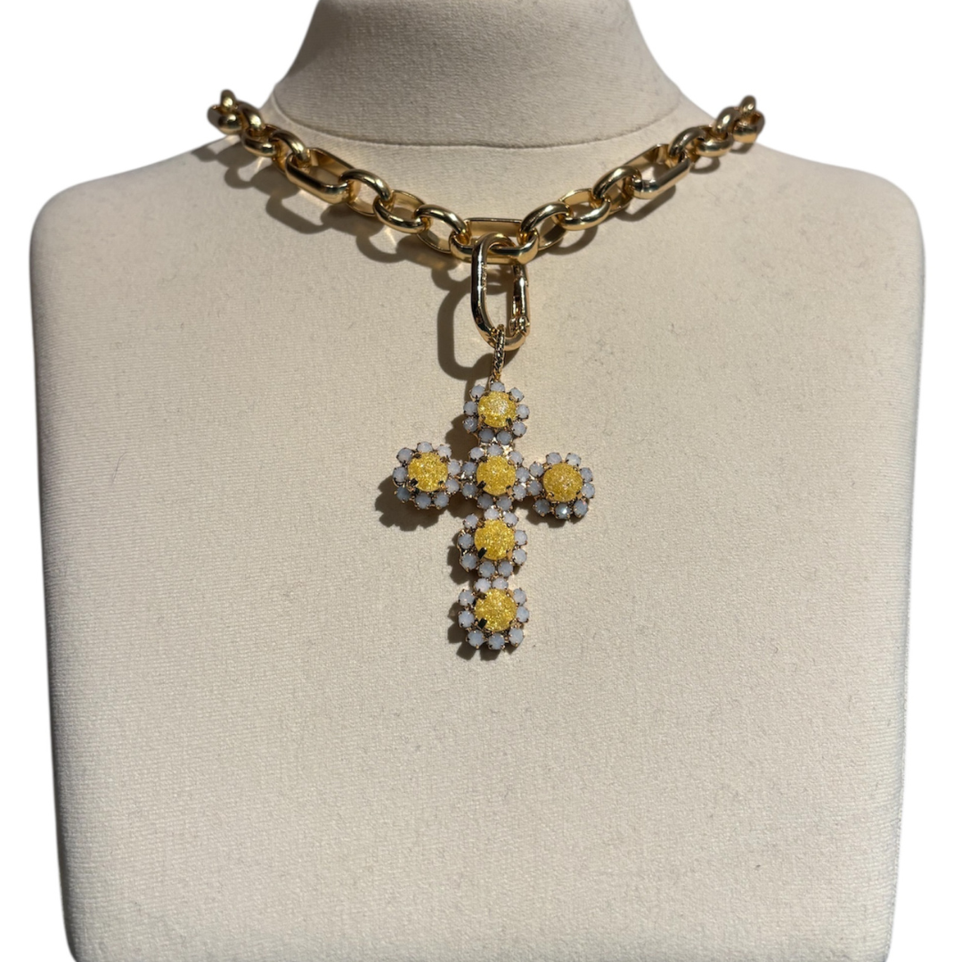 ALEVA' CIONDOLO CROCE LULU ORO-SPARKLE GIALLO