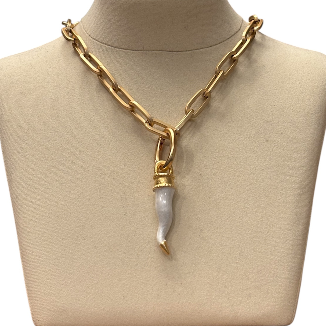 ALEVA' CIONDOLO CORNO ORO SMALTATO-AVORIO