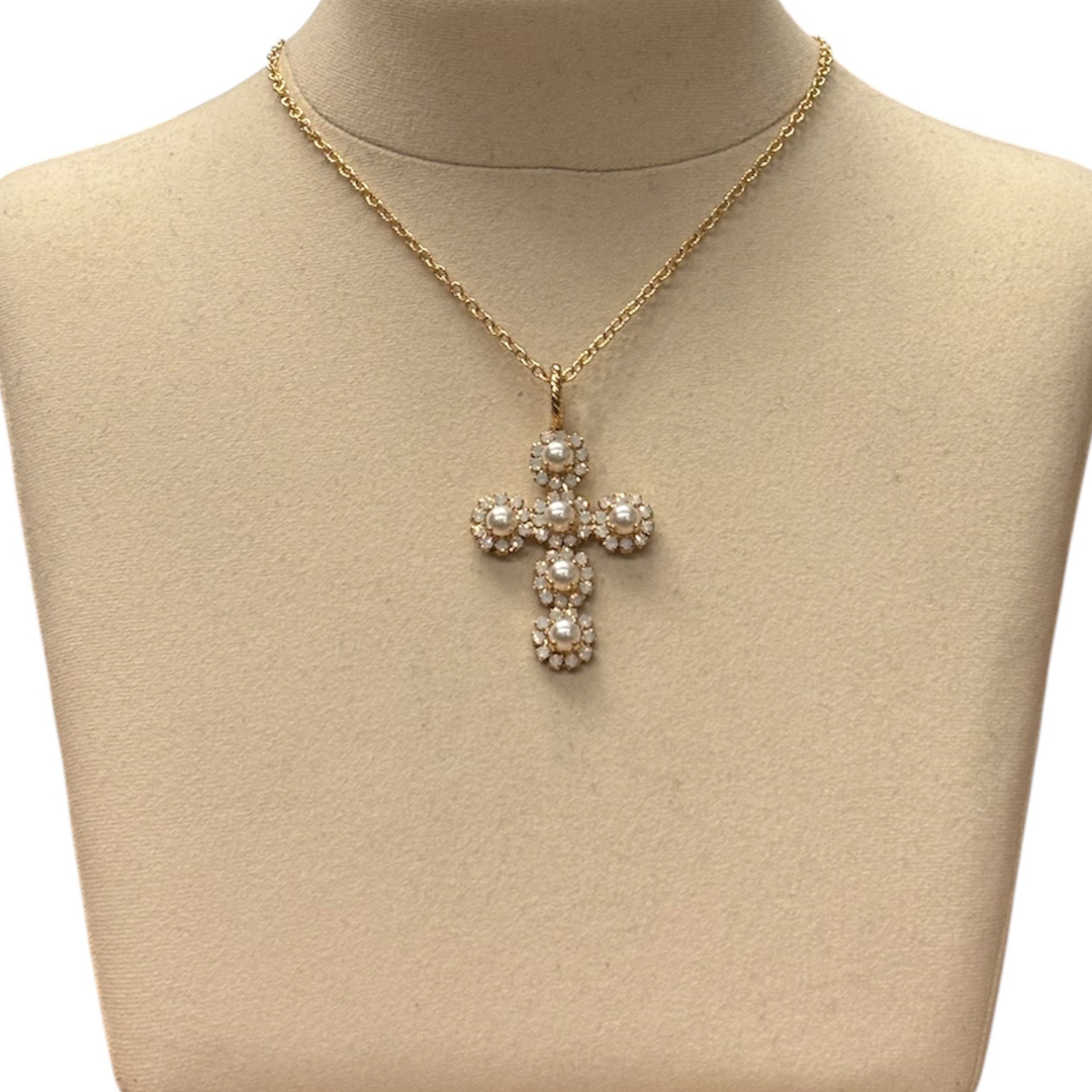 ALEVA' CIONDOLO CROCE LULU MINI ORO PERLE