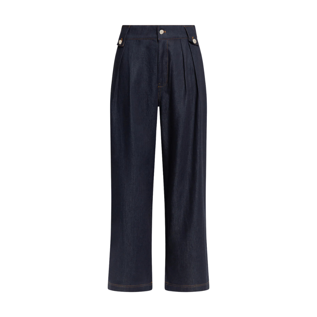 WEILI ZHENG S26PL13 PANTALONE AMPIO IN CHAMBRAY DEEP BLUE DENIM