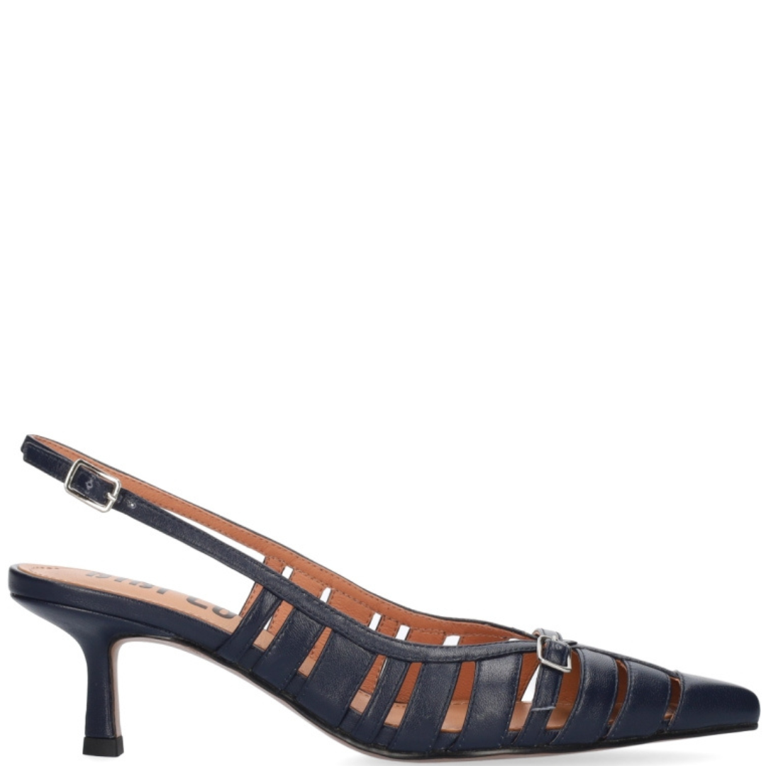 Slingback in pelle, cinturino alla caviglia, taco da 5,5 cm.